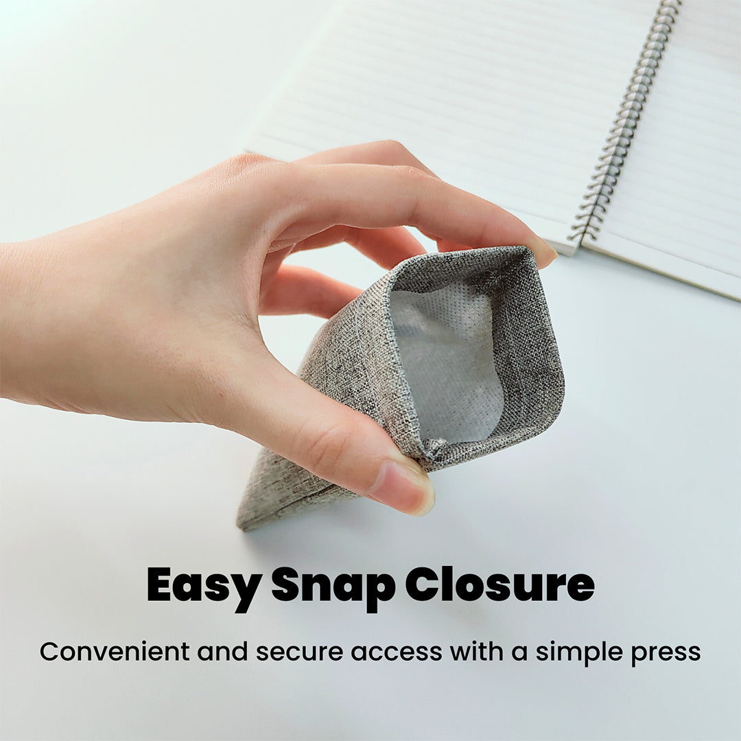 Keep your small gadgets safe and organized with the Jabees Snap Closure Cloth Pouch. Made of high-quality fabric, this lightweight yet durable pouch offers a secure and convenient snap closure for easy access. Its compact design makes it perfect for carrying in your bag or pocket, ensuring your essentials are always within reach.