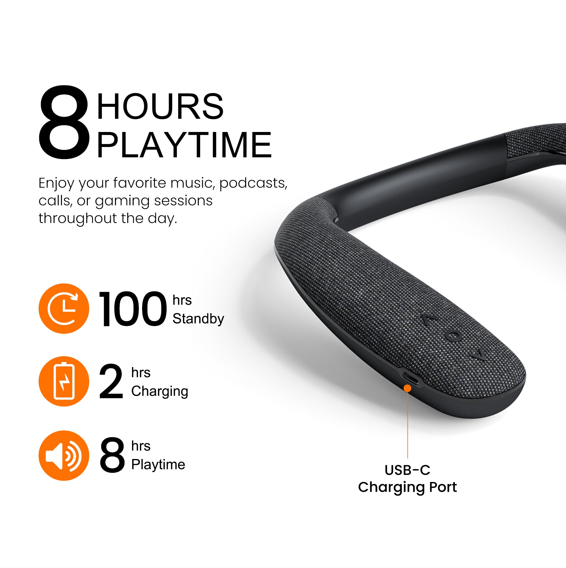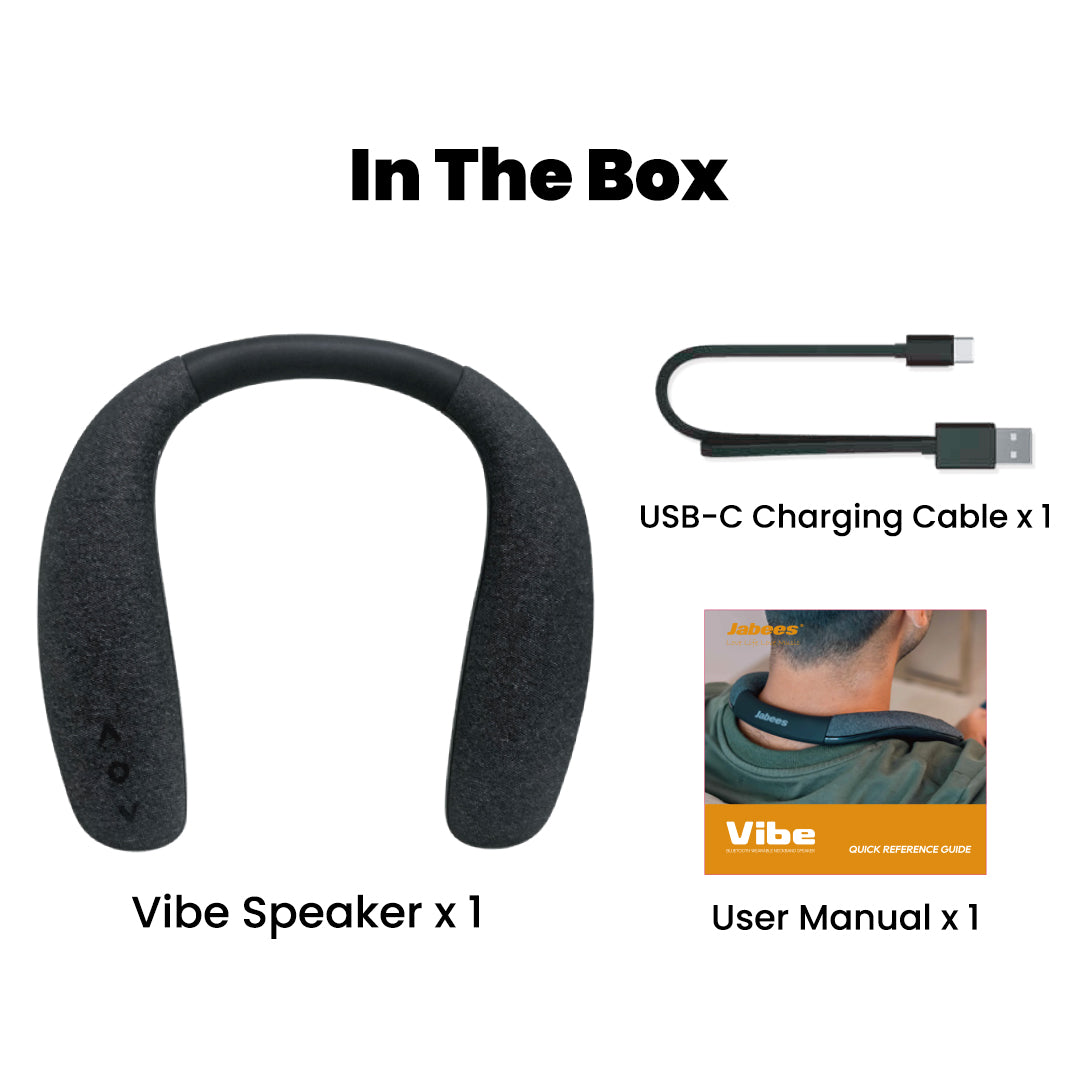• 360-Degree surrounding sound: With its unique neckband design, plus two full-range speaker drivers and two bass radiators, the Vibe surrounds you with 360-degree audio.