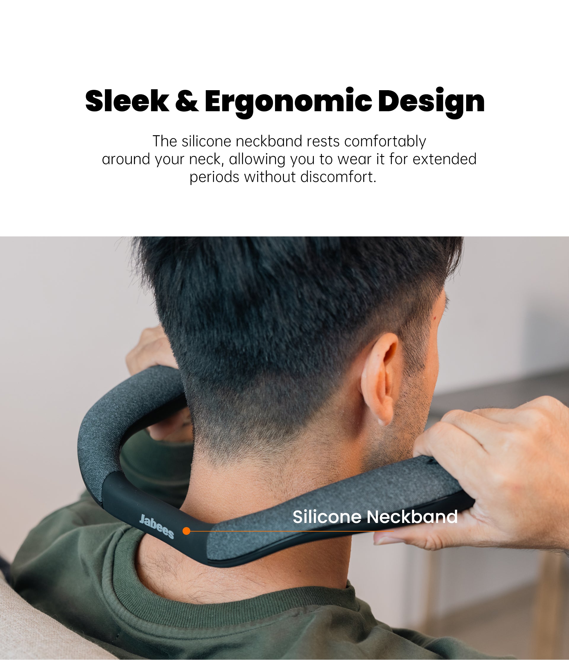 The neckband is made of silicone, allowing you to wear it for extended periods without discomfort.