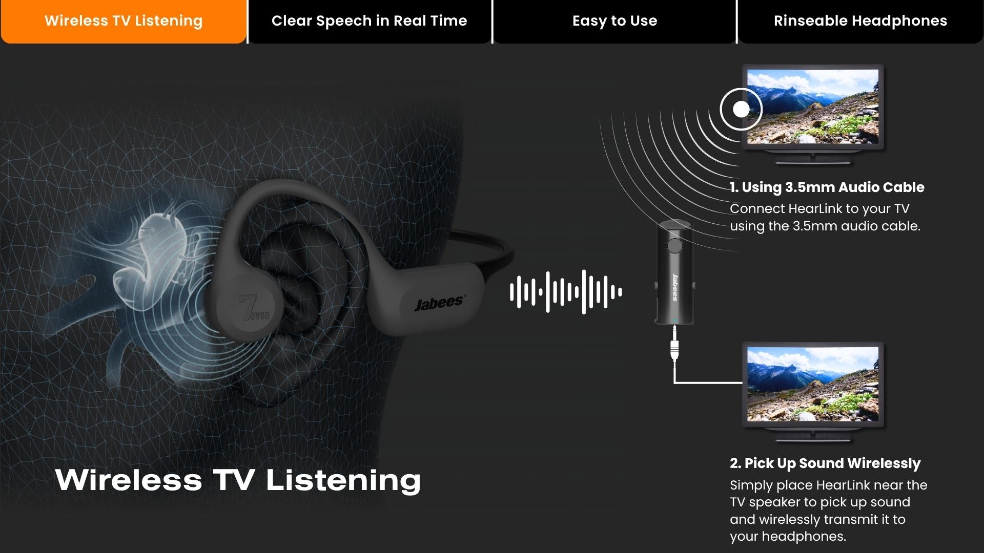 Yes! You can connect HearLink to your TV using the 3.5mm audio cable. Alternatively, place HearLink near the TV speaker to wirelessly transmit audio to the connected headphones — ideal for group viewing.